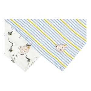 Reine Baumwolle und tolle Designs machen die zwei Mullwindeln von Steiff zum Must-have für Deinen Alltag mit Baby. 2er-Pack Mullwindeln von Steiff Mullwindel 1: geringelt Mullwindel 2: Allover-Drachen-Print kleine Bärenkopf-Applikation auf der Tuchecke 70(L) x 70(B) cm aus reiner Baumwolle Die zwei Mullwindeln sind aus reiner Baumwolle hergestellt und sind so besonders zart zu Babys Haut. Mit ihrer praktischen Größe von 70 Zentimetern eignen sie sich perfekt als Spuck- oder Kuscheltuch, als Wickelunterlage oder sogar als kleine Decke für Fahrten im Auto oder Kinderwagen. Optisch bieten die Mullwindeln gleich zwei verschiedene Designs: Eins ist geringelt, das andere überzeugt mit tollem Allover-Drachen-Print. Auch der Steiff-typische Bärenkopf darf natürlich nicht fehlen – er ist jeweils in einer der Tuchecken aufappliziert.
