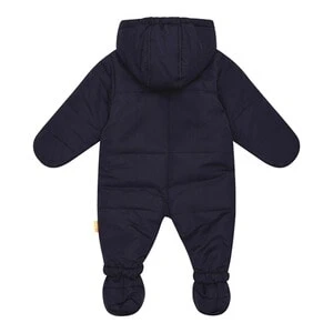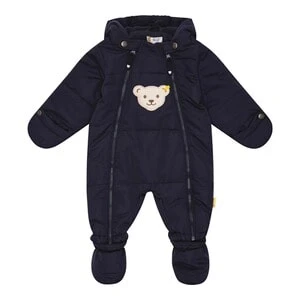 Mit Futter, Wattierung und Kapuze hält der Steppoverall von Steiff Dein Kleines schön warm. Steppoverall von Steiff mit Kapuze gesteppt, Bärenkopf-Applikation auf Brusthöhe durchgehender doppelter Reißverschluss mit Kinnschutz vom Hals bis in die Beine Druckknöpfe am Kragen, an den Umklappbündchen und an den Füßchen elastische Einsätze am Beinsaum und an den Füßchen imprägniert gefüttert und wattiert Das Obermaterial des Steppoveralls ist mit der fluorfreien Bionic-Finish® Eco-Imprägnierung behandelt und macht den Overall schmutz- und wasserabweisend. Das Futter aus reiner Baumwolle verspricht ein angenehm weiches Tragegefühl. Die Kapuze, die Umklappbündchen an den Händen und die Füßchen – die sich bei Bedarf per Druckknöpfe abnehmen lassen – sind mit Fleece gefüttert und sorgen gemeinsam mit der Wattierung für ein Plus an Wärme. Vom Hals bis in die Beine verlaufen zwei durchgehende Reißverschlüsse mit Kinnschutz und ermöglichen so ein kinderleichtes An- und Ausziehen. Elastische Einsätze am Beinsaum und an den Füßchen geben Zugluft keine Chance. Praktisch: Mithilfe der Aufhängeschleife lässt sich der Overall kinderleicht an der Garderobe aufhängen. Dank gestepptem Design punktet der Overall mit einem zeitlos schönen Look. Die Bärenkopf-Applikation auf Brusthöhe sorgt für einen niedlichen Hingucker. Material Obermaterial: 100% Polyester Futter 1: 100% Baumwolle Futter 2 und 3: 100% Polyester Wattierung: 100% Polyester